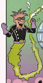 Apareceu pela primeira vez na revista Mônica Nº 233, da Editora Globo. Na revista, a Mônica queria jogar o coelhinho Sansão no Cebolinha, mas errou e acertou o Prof. Spada por engano, que estava consertando o computador dela e assim levou um choque e se transformou no vilão. Só o programa anti-spam do Bloguinho fez ele voltar ao normal.
