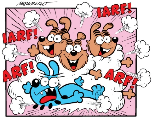 Os garotos zombam: "Um cão com a cara da Mônica!"