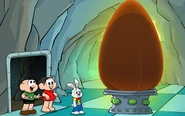 Um dia, uma nave chega à Terra e atrai todos os coelhos. Dela sai um enorme ovo, o “ovo primordial”, de onde se originariam todos os ovos até os dias atuais. Também são citadas outras tradições de paz, amor e ressurreição, além de falar sobre as delícias da data como bacalhau, bolos e chocolate. Mônica e seus amigos também protagonizam uma caça à guloseimas e visitam uma fábrica de ovos de chocolate.